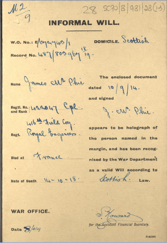 Voices From Our Archives – Corporal James McPhie VC (1894 – 1918)