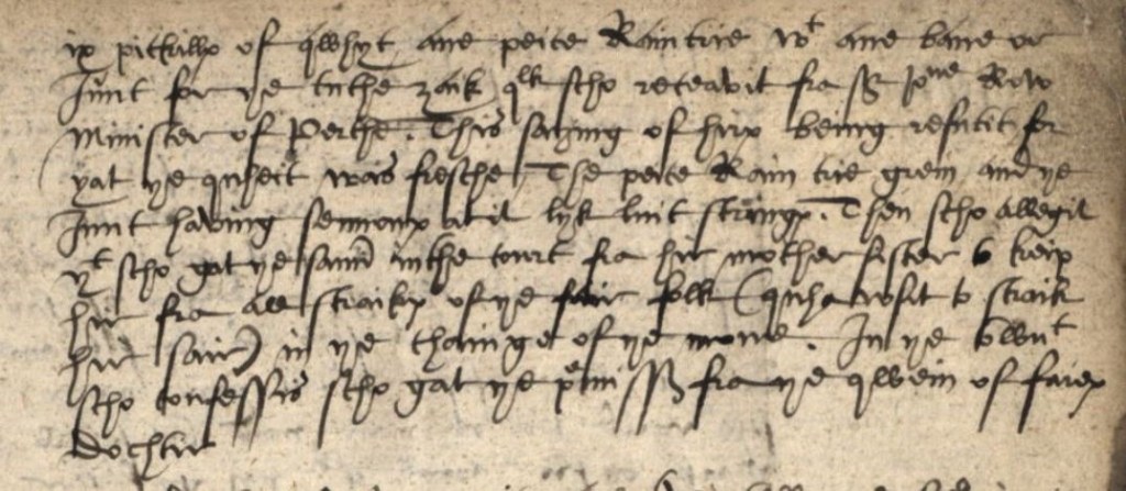 Marginalia from Issobell Watsone’s ‘Ane wiche confessione’. National Records of Scotland, CH2/722/2 page 25.