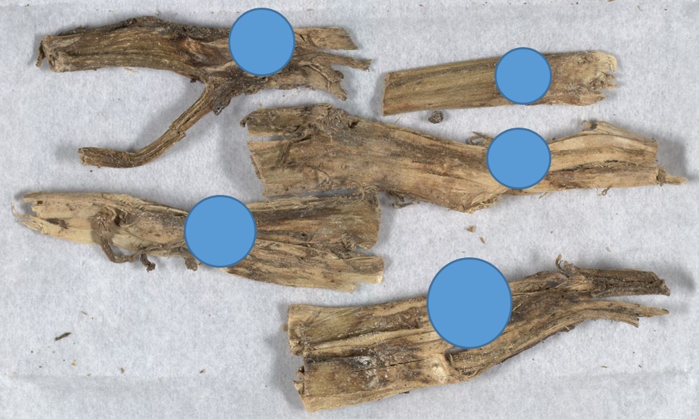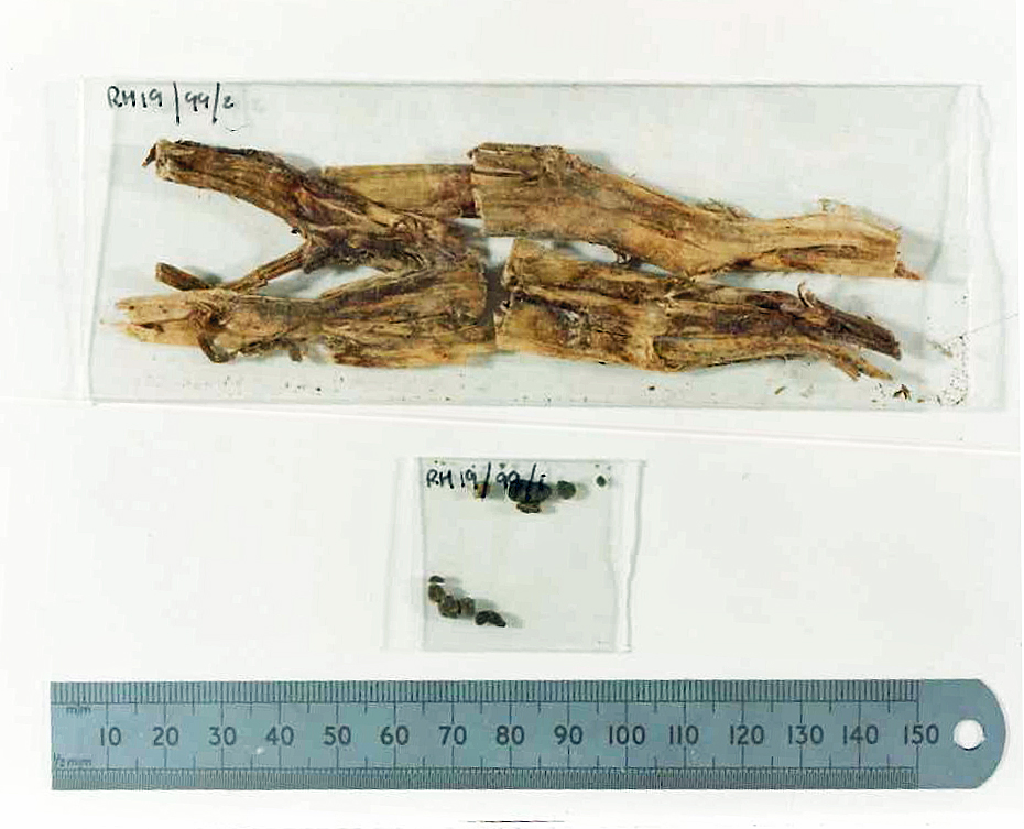 “In the specimens sent you will find these both in the stems in their original position and loose or rolled within paper.”