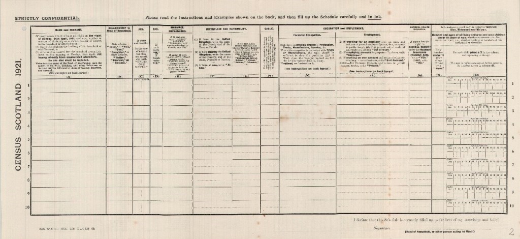 Today, National Records of Scotland archivist Tessa examines a Scottish schedule preserved in the 1921 census for England and Wales which can be viewed online at Find My Past.