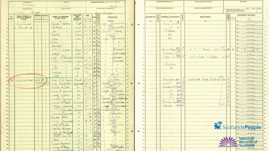 The girls’ parents Edward and Christina can be seen in the census living at 5 Victoria Street, Rutherglen with 10 people sharing two rooms. Seven of the 10 were adults including Christina’s mother, who was 77 and her aunt who was 74. Once the twins came back from their fresh air fortnight there would be seven adults and five children living in two rooms.